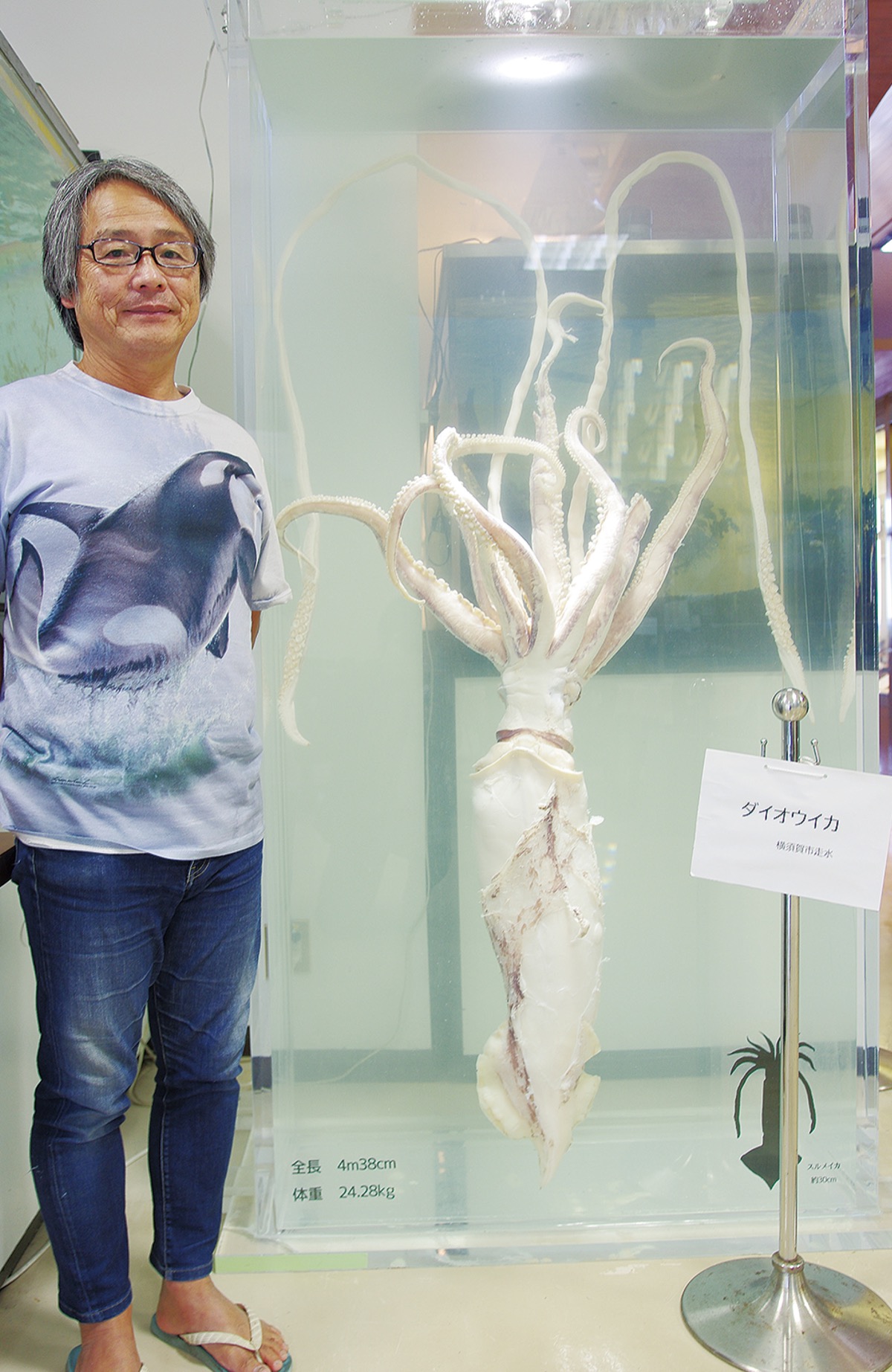 移設された標本は5体。走水沖で発見された全長4mほどのダイオウイカをはじめ、大津漁港で捕獲された貴重なダイオウイカの幼体など。中にはマリンパーク館内の写真撮影場所としても人気のあったマンボウの原寸大レプリカ標本も含まれる。イモリやサンショウウオといった小型の水辺生物も博物館内で元気に"セカンドライフ"を過ごしている。