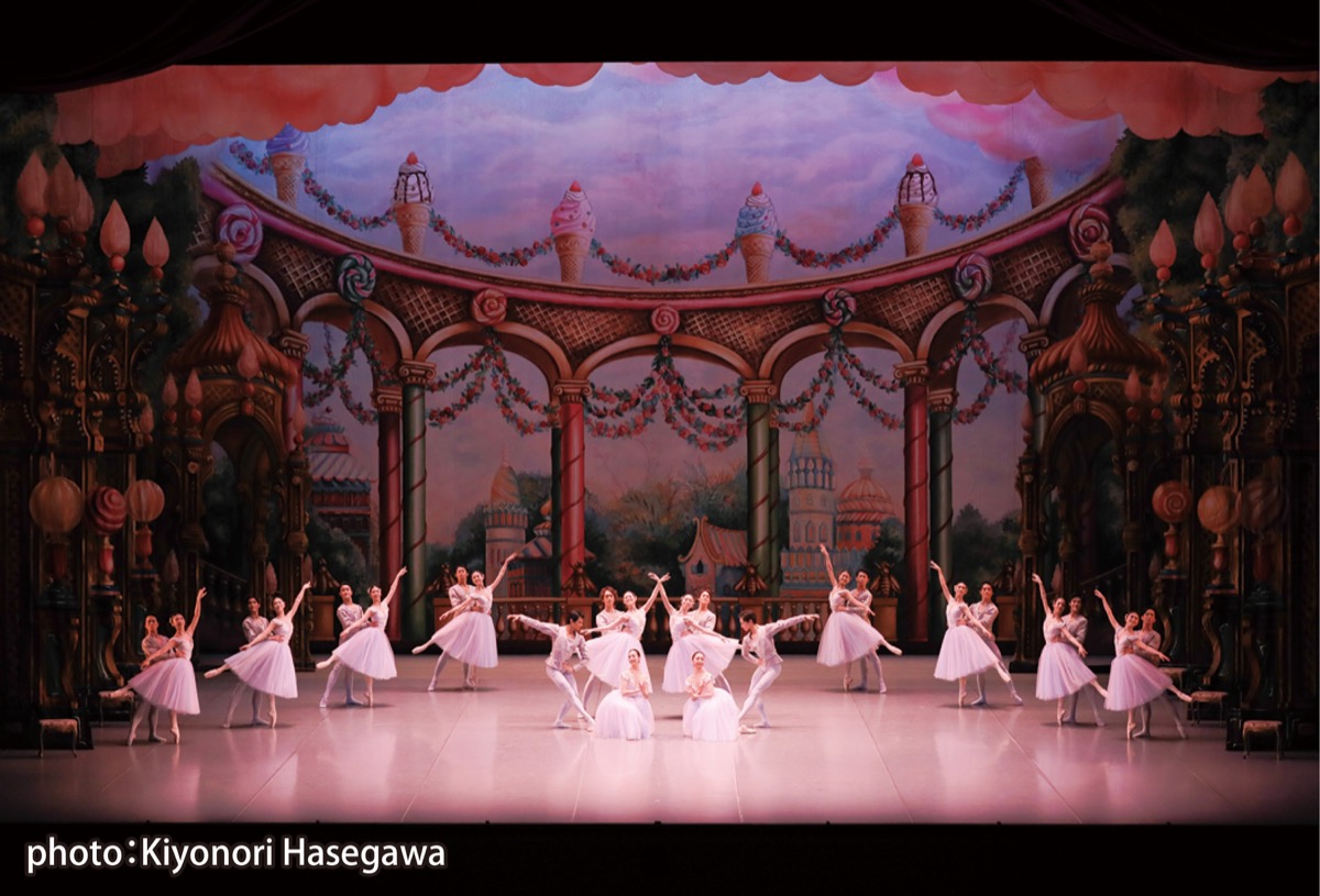 華やかな行進曲で幕が開け、「くるみ割り人形とねずみの王様の戦い」を経て、雪の国で2人が雪片とたわむれるように舞う幻想的なダンス。スペインやアラビア・中国・ロシア・フランス―など、お菓子の国の宴でくり広げられる個性的な踊り。そしてマーシャと王子の華麗なグラン・パ・ド・ドゥ(主役2人の踊り)まで、見どころは尽きない。主なソリストは、秋山瑛(マーシャ)、宮川新大(くるみ割り王子)で、同団の選び抜かれたダンサーたちがステージを舞う。