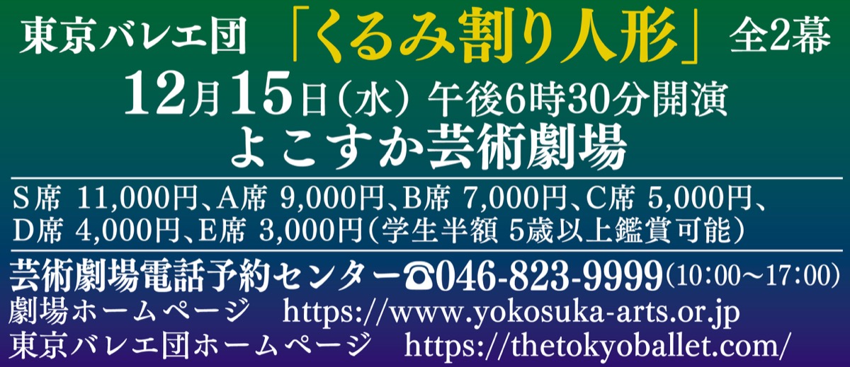 チャイコフスキーの珠玉の名曲にのせた、クラシック・バレエを代表する作品のひとつ「くるみ割り人形(全2幕)」の公演が12月15日(水)、よこすか芸術劇場で催される。東京バレエ団が2019年に新制作した版で、斎藤友佳理さん(横浜市出身)が芸術監督を務める。