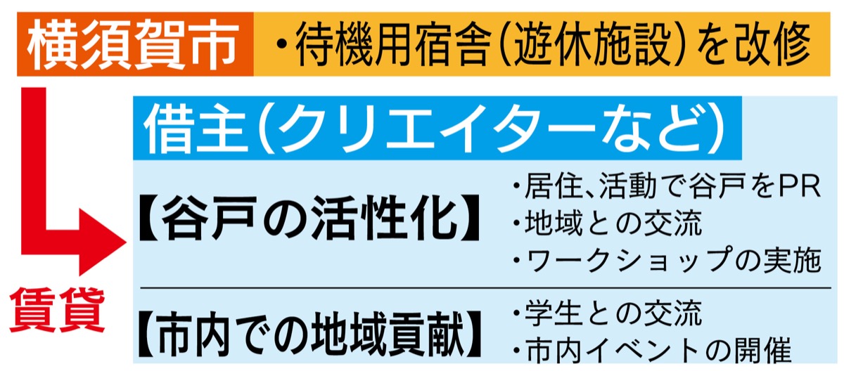 横須賀市は遊休資産となっている上下水道局の待機用宿舎(西逸見町)を改修してeスポーツプレイヤーやインターネット関連のクリエイターなどに貸し出す。修繕費用等を盛り込んだ補正予算案を開会中の12月定例議会に提出。移住と地域交流による谷戸の活性化が狙いで、入居者は来年1月から公募する。