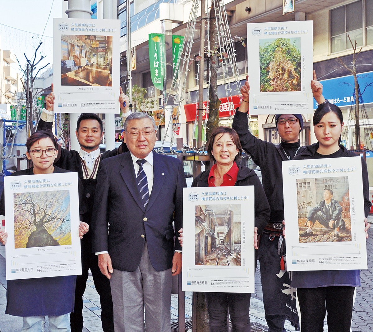 全国大会などで数々の賞を獲得している横須賀市立横須賀総合高校(久里浜6の1の1)美術部を応援しようと、最寄りの久里浜商店街で同部のアート作品を展示する初の試みが行われる。12月18日(土)から横須賀美術館で始まる特集「横須賀市立横須賀総合高校 美術活動の歩み」の企画に連動。商店街全体をギャラリーに見立て、各店がパネル化した作品を飾る。コロナ禍で客足が鈍る商店街への来街にもつなげたい意向だ。