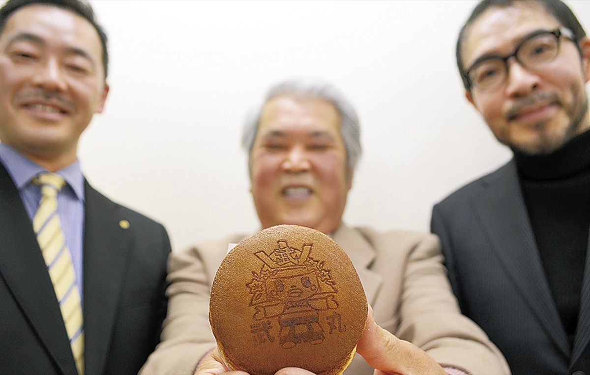 武山地区のマスコットキャラクター「武丸」が焼印されたどら焼きが1月28日(金)、恒例行事「武山初不動」に併せ、武山山頂で発売される。300個限定。