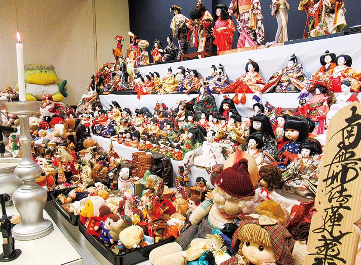 地域密着型の辰若葬儀社/家族葬のエニシアでは3月3日(木)、「第十五回人形供養会」を開く=写真。大切にしていた人形などに感謝の気持ちを捧げて別れを告げる。会場の「辰若中央斎苑」(米が浜通2の1)に設けた祭壇に供養品を並べて僧侶が読経をあげる。依頼者は参列して焼香をすることが可能だ。家族葬専用ホール「エニシア佐原」(佐原3の21の25)もメイン会場とつないでオンライン供養会を行う。