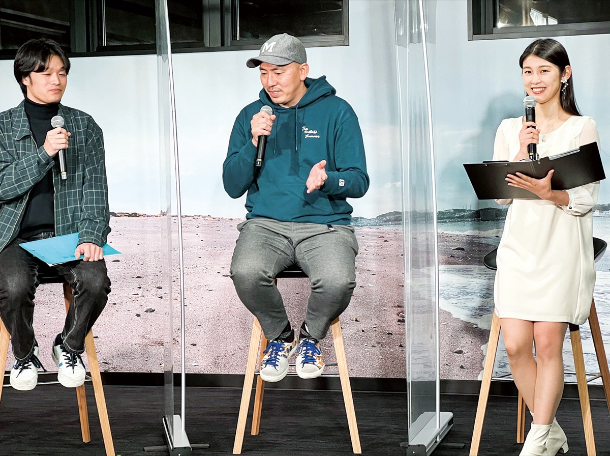 東京湾に浮かぶ唯一の無人島・猿島を舞台にしたショートムービーの初公開イベントが2月20日、三笠ターミナルで行われた。猿島航路を運航する(株)トライアングル(鈴木隆裕代表)が企画。作品に出演した杉原枝利香さん=人物風土記で紹介=と斉藤陽葵さんが司会を務め、完成した3本のほか、監督や共演者によるトークイベントの様子が生配信された。