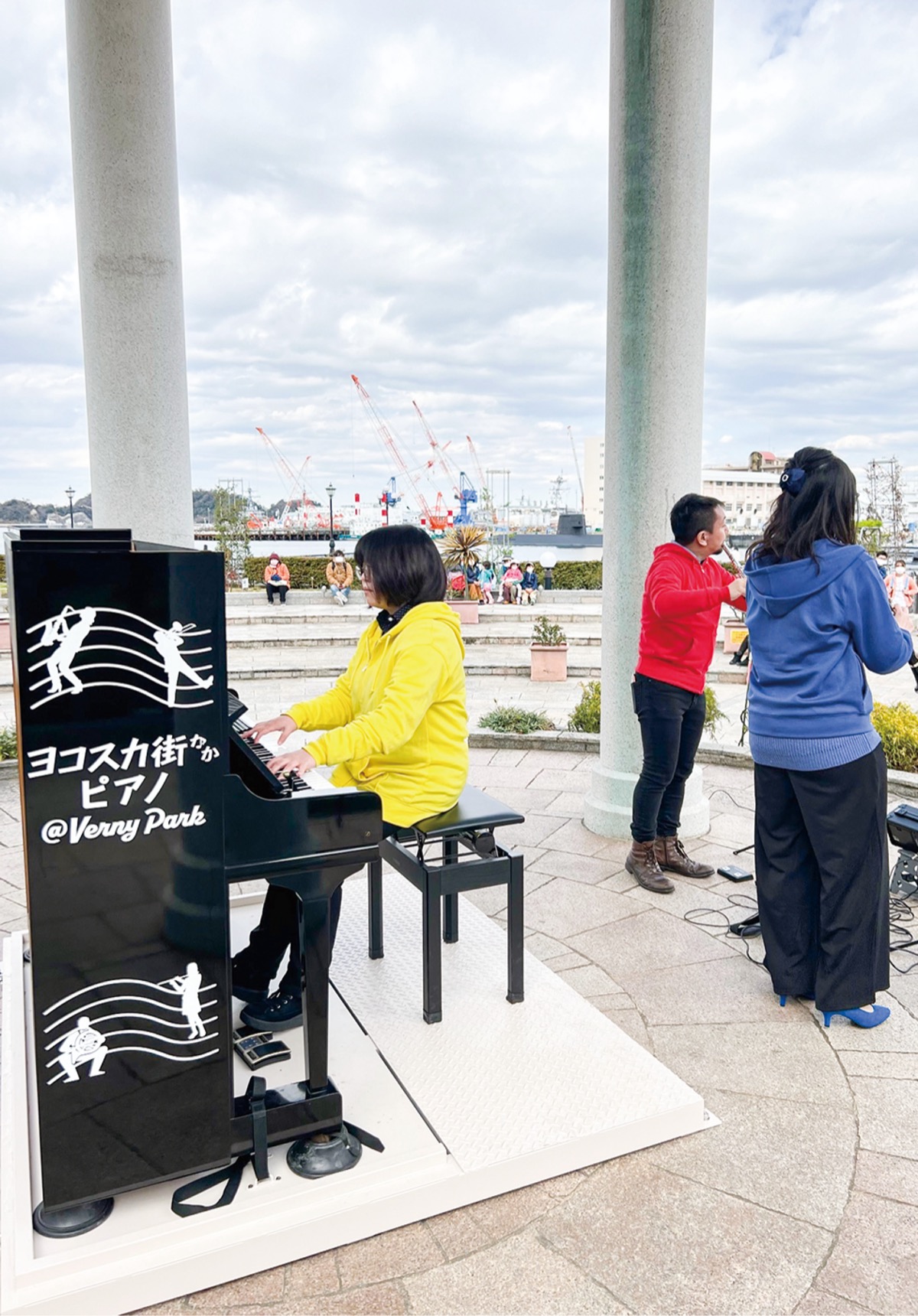 公共空間でピアノ演奏を自由に楽しんでもらう「街なかピアノ」の取り組みで、横須賀モアーズシティ、市役所本庁舎に続く三例目。同月20日には、「よこすかの音楽家を支援する会」のアーティストらによる演奏があり、春の陽気に誘われて公園を訪れた人たちが足を止めて聞き入った。園内のピアノは土曜・日曜・祝日とイベント開催日は誰でも弾くことができる。午前10時から午後4時まで。市ではピアノ教室の発表会などにも活用してもらいたい考え。