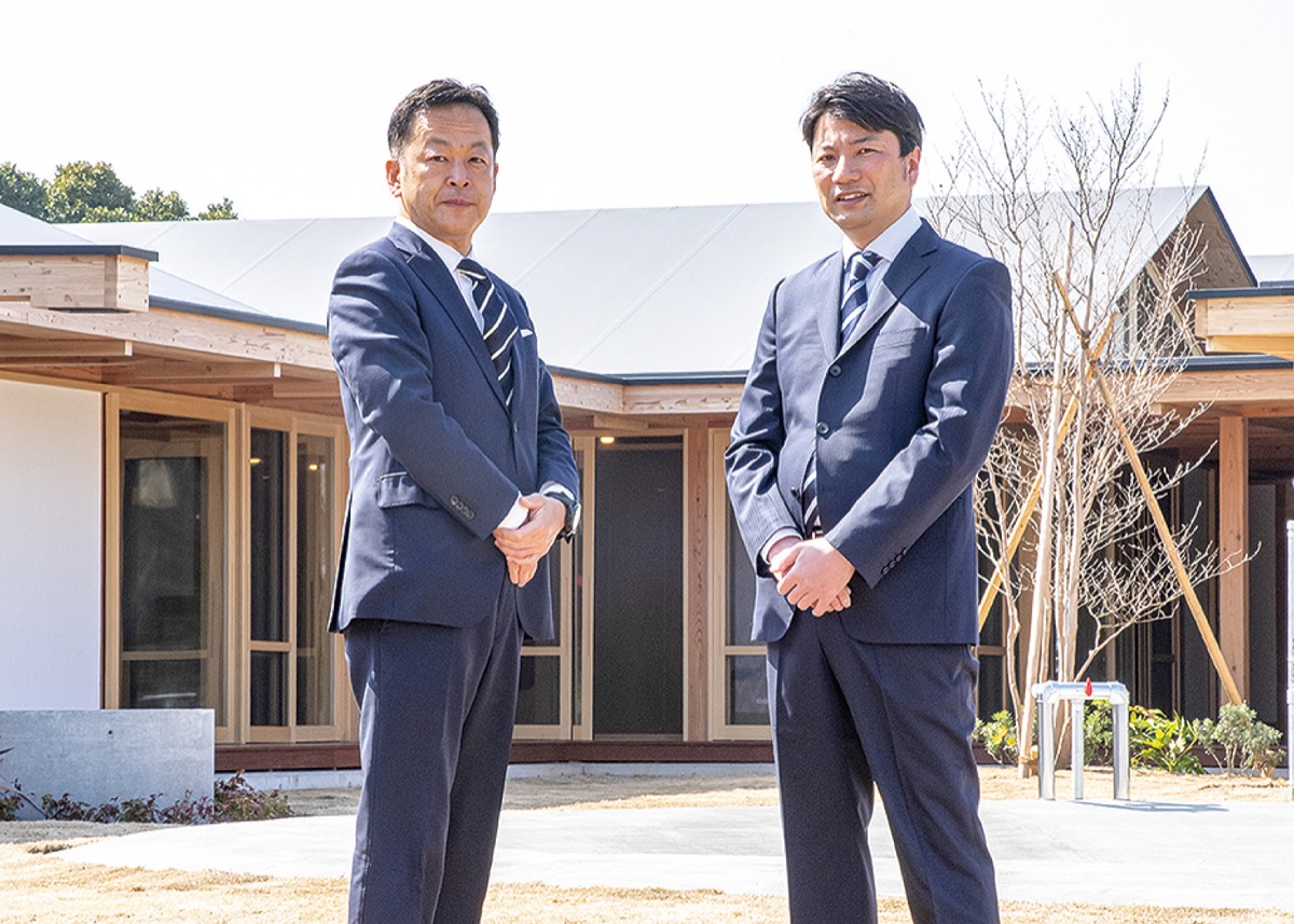 「耐震性能と周囲の生活環境に大きな影響を与えないという観点から平屋建てを考えた」と綴喜誠淳園長。どの教室からも天然芝の園庭に飛び出して走り回れる動線を確保したほか、全教室のフローリングは柔らかく歩行感に優れる桐材を採用。これには転倒時の衝撃を軽減する効果があり、同園が掲げる”こども第一主義”を形に示した。雨といの機能を持ち、雨水が勢いよく流れ落ちるガーゴイルや音を鳴らす仕組みの鎖といも園舎の各所に配置。「自然による物理現象を視覚化することで、園児の興味や関心を引き出す工夫を凝らしている」と綴喜園長は満足げな表情。施主が求めることを汲み取り、確かな技術で大神が実現していった。