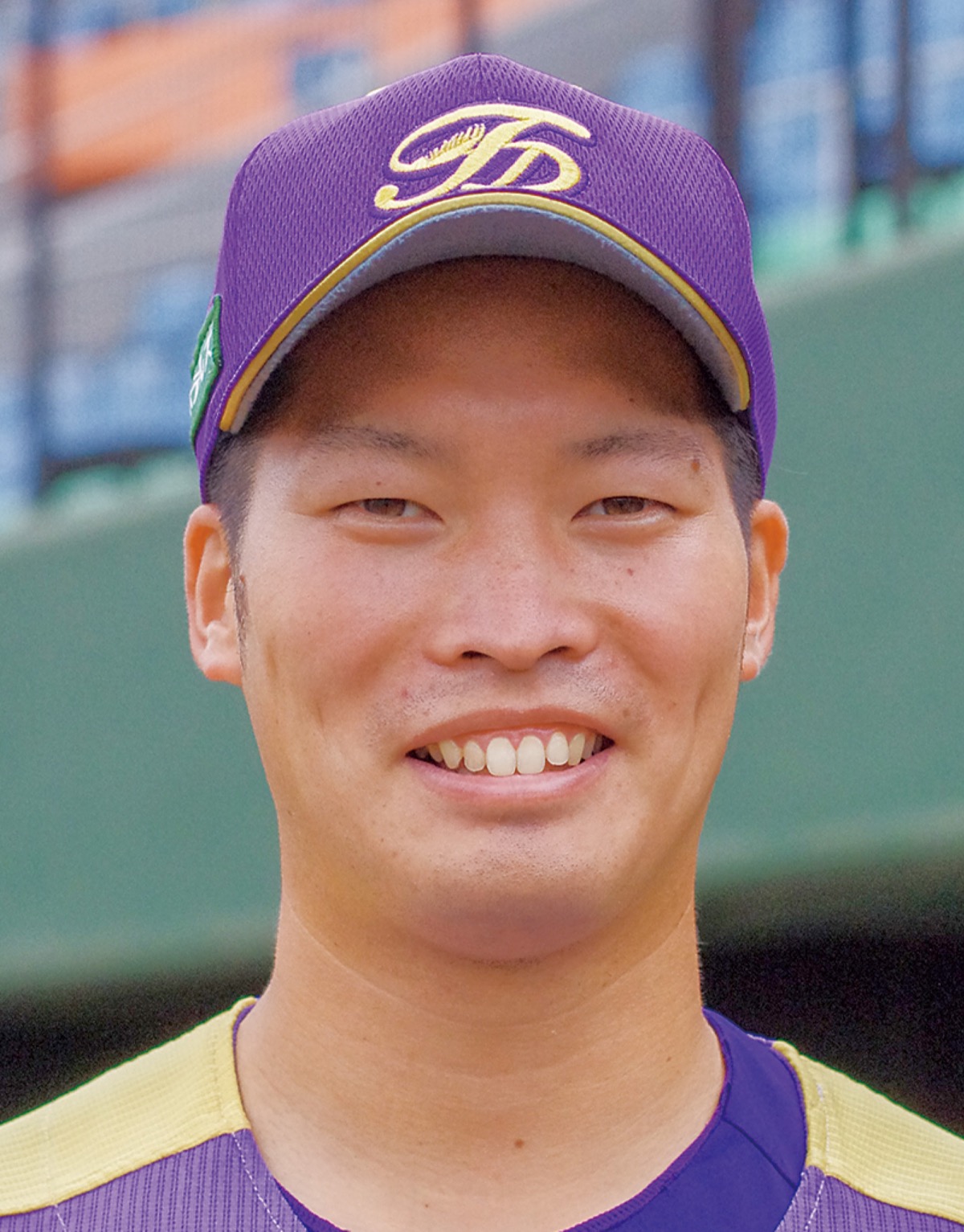 ○…183cm、87kgと恵まれた体格。変則左腕の技巧派投手。憧れは横浜DeNAベイスターズの倉本寿彦選手。立場や環境は違えど「言い訳を並べて野球を辞めるのは簡単だが、自分の伸びしろを誰よりも信じ抜いて長く続けている情熱的な姿勢は凄いの一言」と崇める。背番号の「14」は学生時代からつけてきたラッキーナンバー。「年齢的にも今年は勝負の年。誰よりも”ゼロ”にこだわって投げ、チームの勝ちに貢献したい」。野球への情熱を1球に込め、不退転の覚悟でチームを頂へ導く。