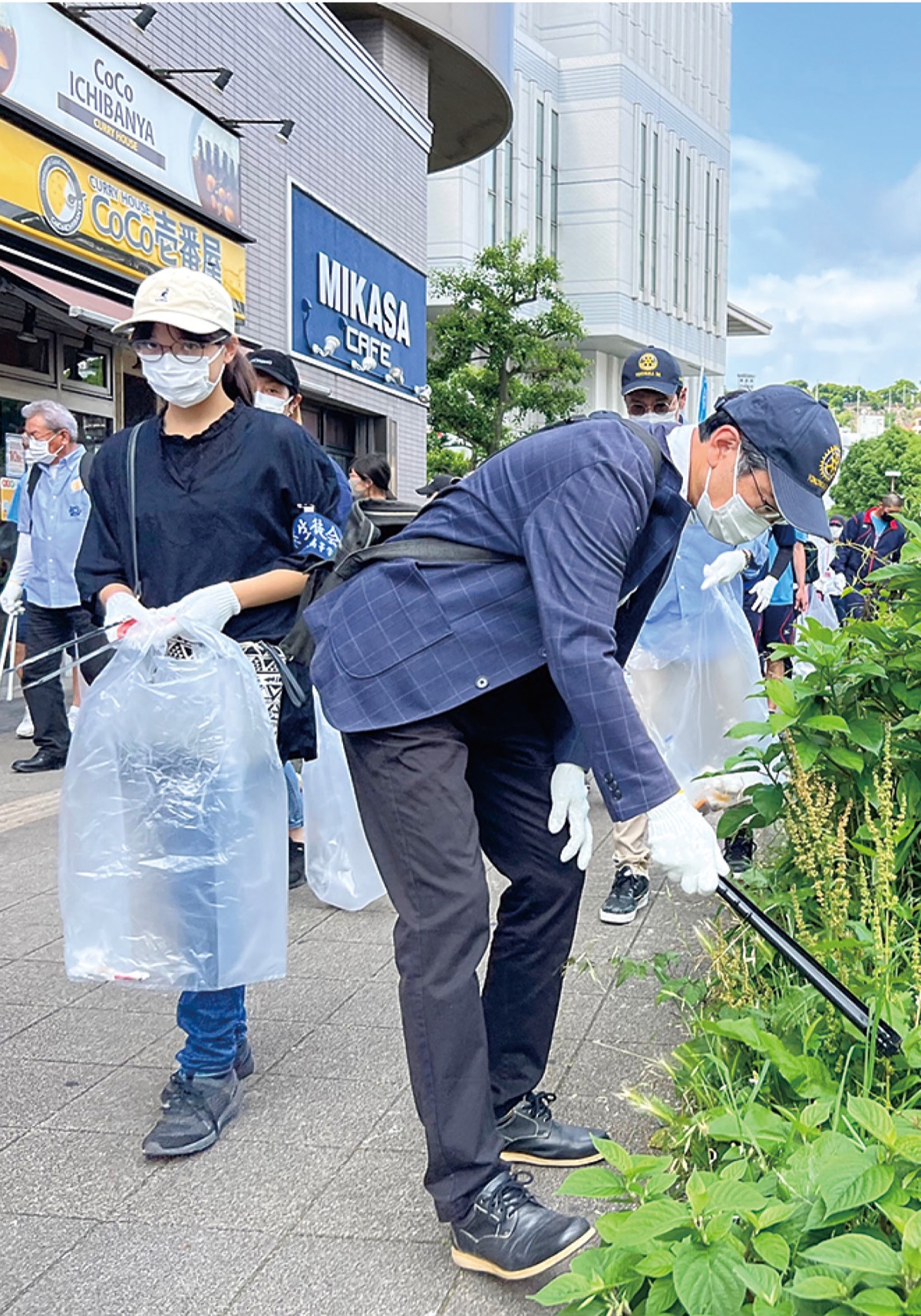京急浦賀駅、横須賀美術館、海辺つり公園、ヴェルニー公園の4カ所に分かれ、たばこの吸い殻やペットボトル容器、使用済みマスクなどを拾いながら平成町の横須賀商工会議所まで歩いた。