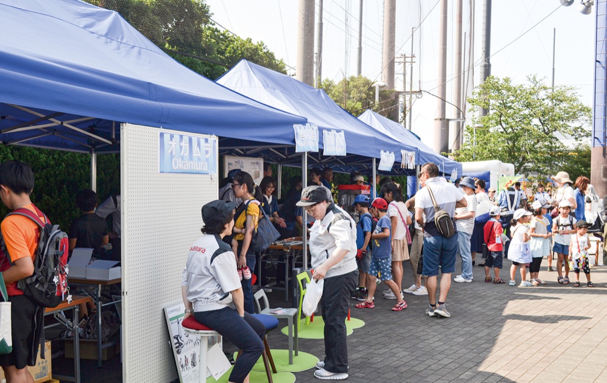 3年ぶりの開催で、展示と縁日ブースにはオカムラ・京浜発條・日産自動車・JAMSTEC・横須賀膝会・シティサポートよこすか・北消防署・追浜地域運営協議会・ともしびショップマリンなどが出店。追浜で製造されている製品の紹介や地震体験車による体験コーナーも用意する。