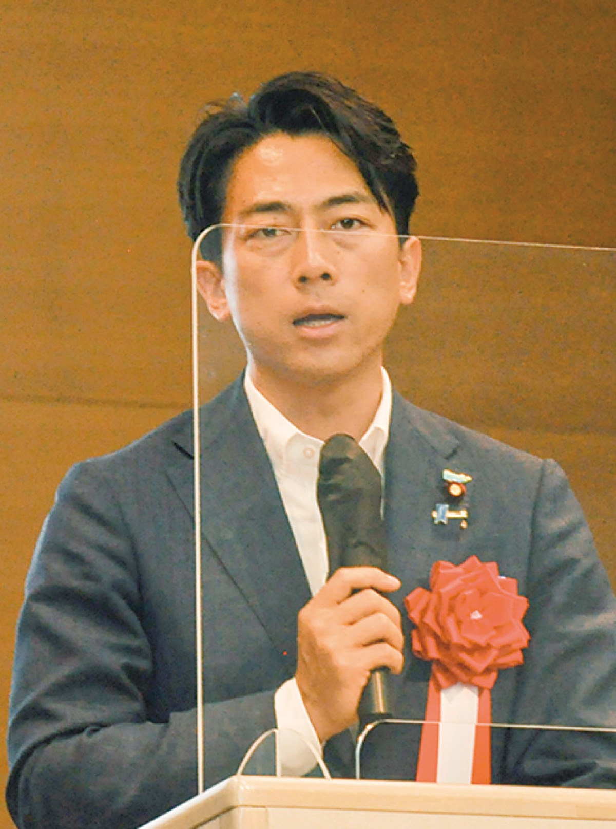 この日の発表会で基調講演を行った小泉進次郎代議士=右写真=は、YRPの針路としてサイバーセキュリティ強化のための拠点になることを提言した。