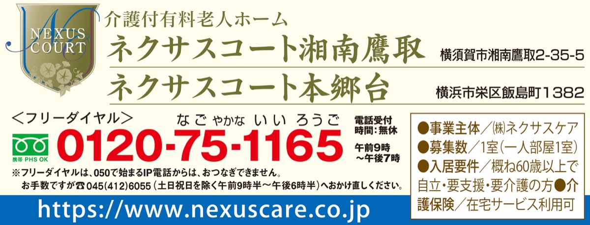 コロナ禍、面会や行事などさまざまな面で制限が続いてきた介護施設。(株)ネクサスケアが運営する介護付有料老人ホーム「ネクサスコート湘南鷹取」(湘南鷹取2丁目)と「ネクサスコート本郷台」(横浜市栄区)では、6月から入居者の外出や家族との面談を緩和。感染対策を徹底しながら、心から安らげる「第二の我が家」を実現している。