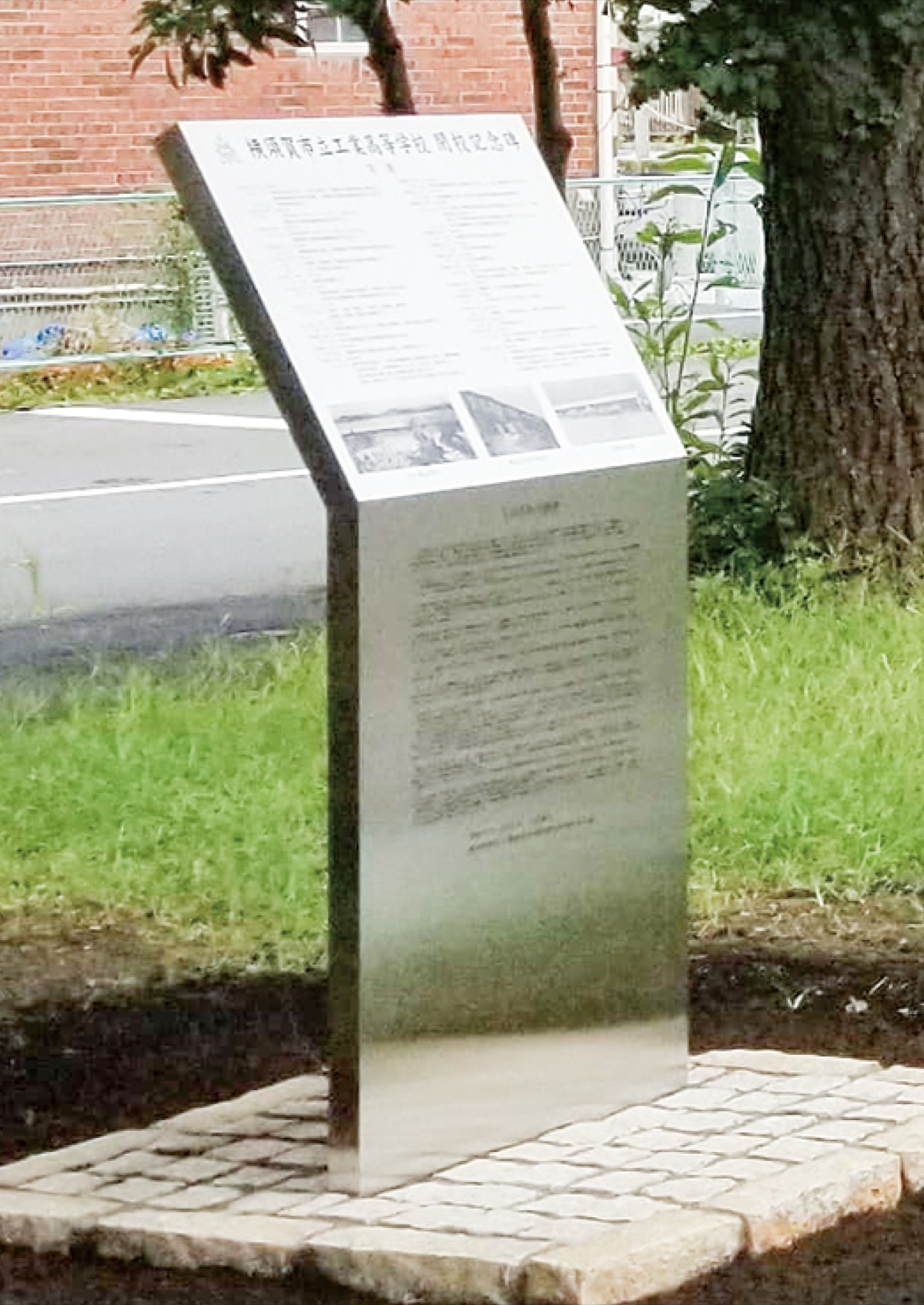 「人間味豊かな工業人の育成」という教育目標のもと、ここで学んだ卒業生は約1万7千人に上る。同校は豊島小・汐入小の校舎、八幡山、公郷町、池上町、久里浜と場所を転々。「閉校で同窓会組織もない。今も実習棟は残っているが、当時の校舎も解体されて市工をしのぶものがなくなってしまっていた」と1958年度卒業生の森田常夫さん=人物風土記で紹介。昨年、「市工の歴史を保存する会」を立ち上げ、モニュメント(記念碑)づくりの寄付を募る活動を開始し、約410人の卒業生と企業11社が賛同。約290万円が集まり、ステンレス製の記念碑が完成した。