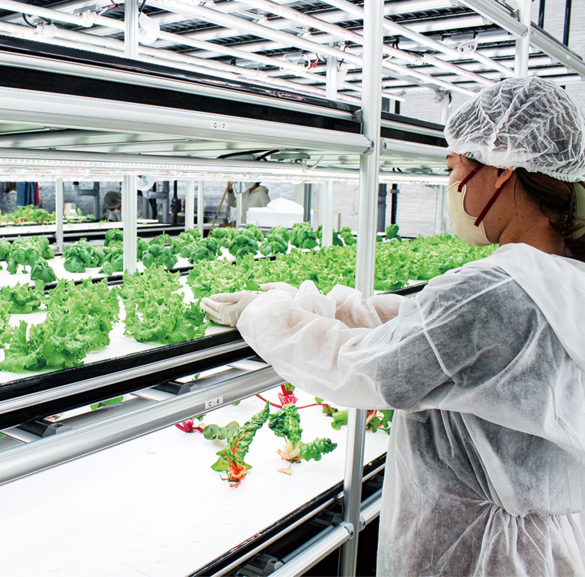 白色ライトに照らされた室内の「棚」には青々とした葉野菜がずらり―。ここは今年8月、船越に開設された屋内型の水耕栽培施設「かいせいファーム横須賀」。特徴は「農福連携」による運営で、企業の障害者雇用と農業の担い手不足という2つの課題を解決するため、水耕栽培プラント設備を手掛ける株式会社KAISEI(東京都)が立ち上げた。