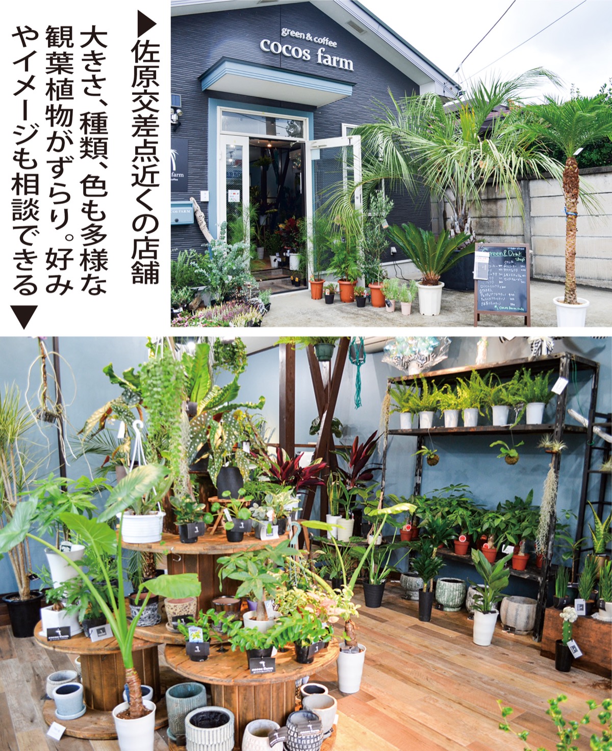 室内に「植物」を取り入れて緑のある生活を-。コロナ禍も相まって、インテリアグリーンが注目されている。今年9月、佐原にオープンしたばかりの「cocos farm(ココスファーム)」は、市内でも珍しい観葉植物の専門店。パキラやモンステラなどの”定番”から、エアープランツ、サボテンや多肉植物まで100種近く、好みの「グリーン」に出会えるはず。室外用の植物や鉢、栽培雑貨なども多数取り揃えており、取り置きや配送、地植え等の造園工事も対応。育て方や植え替えの方法も丁寧に教えてくれる。