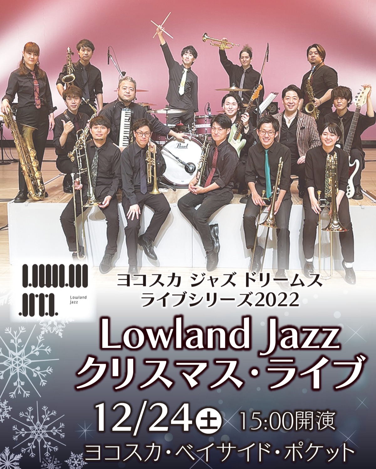 クリスマス・イヴに全世代で楽しむ、スーパービッグバンドライブを―。ヨコスカ ジャズ ドリームス ライブ・シリーズとして12月24日(土)、LowlandJazz(ローランド ジャズ)のステージが企画されている。会場は、汐入駅前のヨコスカ・ベイサイド・ポケット、午後3時開演。