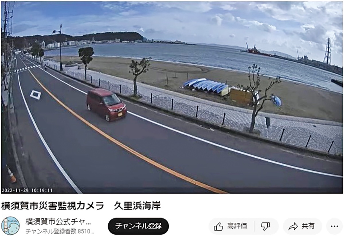 横須賀市は、11月25日から災害監視カメラの運用を始めている。過去に冠水や越波などで被災した27地点にカメラを設置。映像は市公式YouTubeチャンネルで公開されており、リアルタイムで付近の状況を確認することができる。