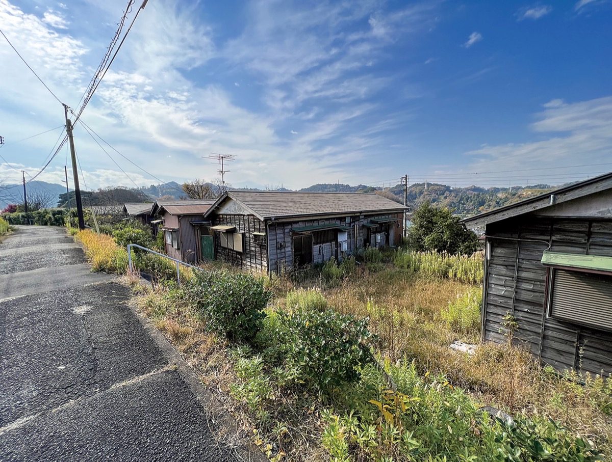 敷地面積1万3653平方メートルの「旧市営田浦月見台住宅」は、JR田浦駅徒歩約10分の場所にあり、「の」の字を描いてループする急な坂道を上り切った先の高台に全74戸の平屋建て住宅がある。