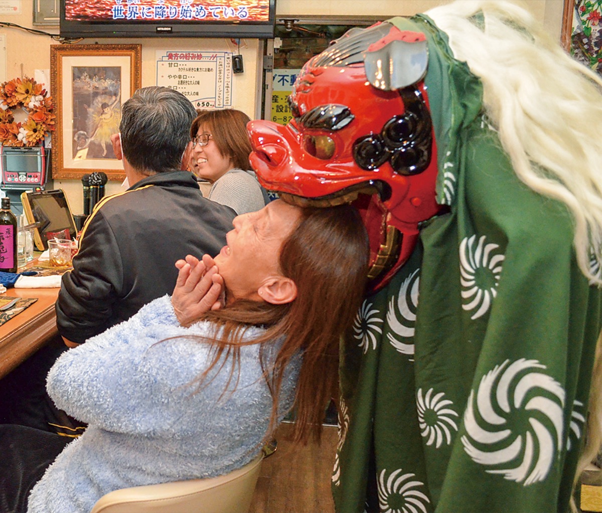 横須賀を代表する歓楽街である若松マーケットでは、獅子の来訪を歓迎する声があちこちの店から聞こえた。獅子に頭を噛まれると邪気が払われるという言い伝えがあることから、多くの人が頭を差し出していた。