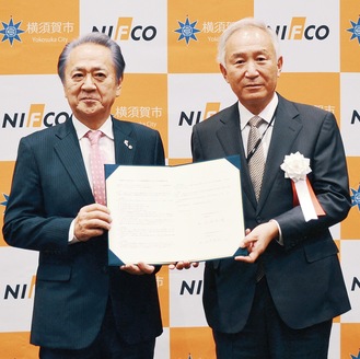 横須賀市は1月16日、YRP進出企業の(株)ニフコ(光の丘5の3)と地域課題解決をテーマとした包括連携協定を結んだ。市内学校等のICT化の推進や人材育成、市内事業者の生産性向上などで双方の強みを活かし、情報共有を行うことで実現をめざす。