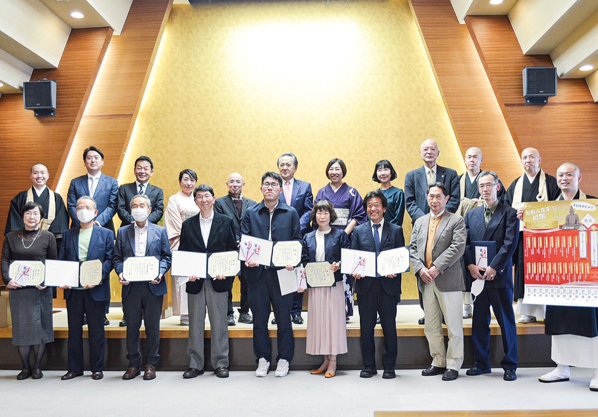 鎌倉殿の御恩に報おうと出世争いをする三浦一族らの御家人たちの”悲哀”は、まるで現代のサラリーマンのよう―。そんな双方の立場を重ね合わせた「川柳」のコンテストが行われ、3月10日に表彰式が開かれた。一般社団法人BUSHIDO文化協会が事務局となり、昨年7月から12月に作品を募集。全国から962句が寄せられ、そのうち協賛企業賞に11句、協力寺院賞12句が選出された。