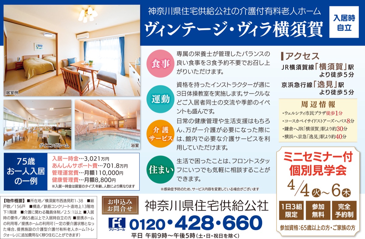 神奈川県住宅供給公社の介護付有料老人ホームヴィンテージ・ヴィラ横須賀(入居時自立)
