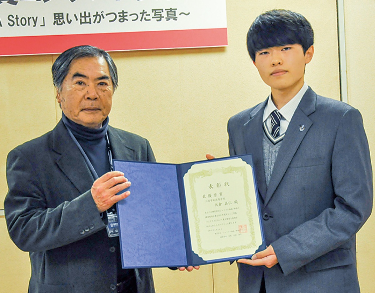 三浦半島の高校写真部員が作品の出来栄えを競う「すかっこ写真コンテスト〜『My YOKOSUKA Story』思い出がつまった写真〜」の表彰式が3月18日、横須賀市産業交流プラザで開かれた。ジェイコム湘南・神奈川 横須賀局の主催。高校生の活躍の場づくりを目的に4年前から実施しているものでコンテスト形式は今回が初めて。6校から43作品が寄せられ、三浦学苑高校の大倉嘉仁さん(2年)が最優秀賞を受賞した。