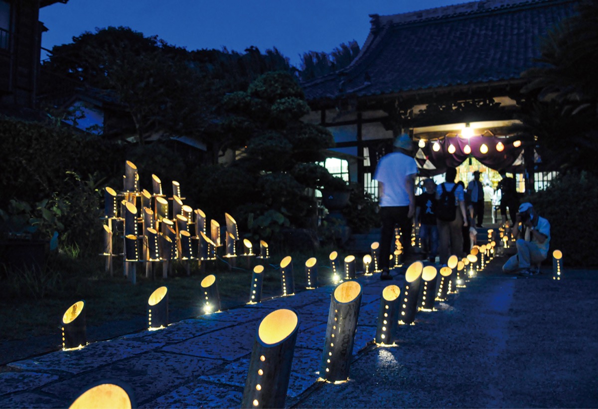 先祖供養のひとつである伝統的な七夕(棚幡)にちなんだイベント「盆竹灯籠まつり」が、三浦半島の5つの寺院(芦名「浄楽寺」/初声「福泉寺」/長井「不断寺」/武山「東漸寺」/葉山「長運寺」)でリレー開催されている。主催は盆竹灯籠まつり実行委員会(MONKS三浦半島)。