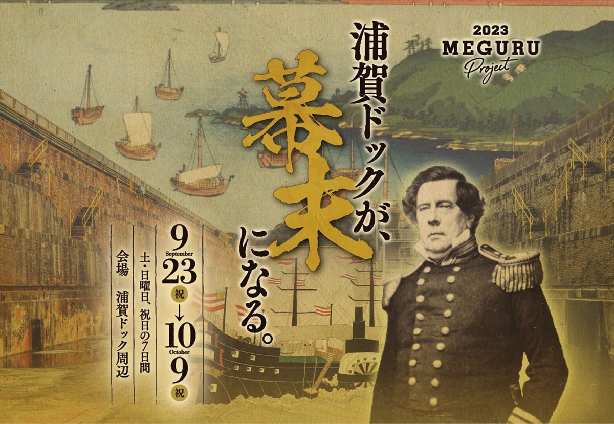 横須賀市の上地克明市長は8月23日、今秋実施する浦賀ドック周辺をメイン会場とする一大イベント「MEGURU Project2023」の開催概要を発表した。今年はペリー率いるアメリカ艦隊が浦賀沖に姿を見せて170年の節目となることから、開国期の幕末を意識した仕立てになる。開催日は9月23日(土)から10月9日(月)までの土・日曜祝日の7日間。期間中3万人の人出を見込む。