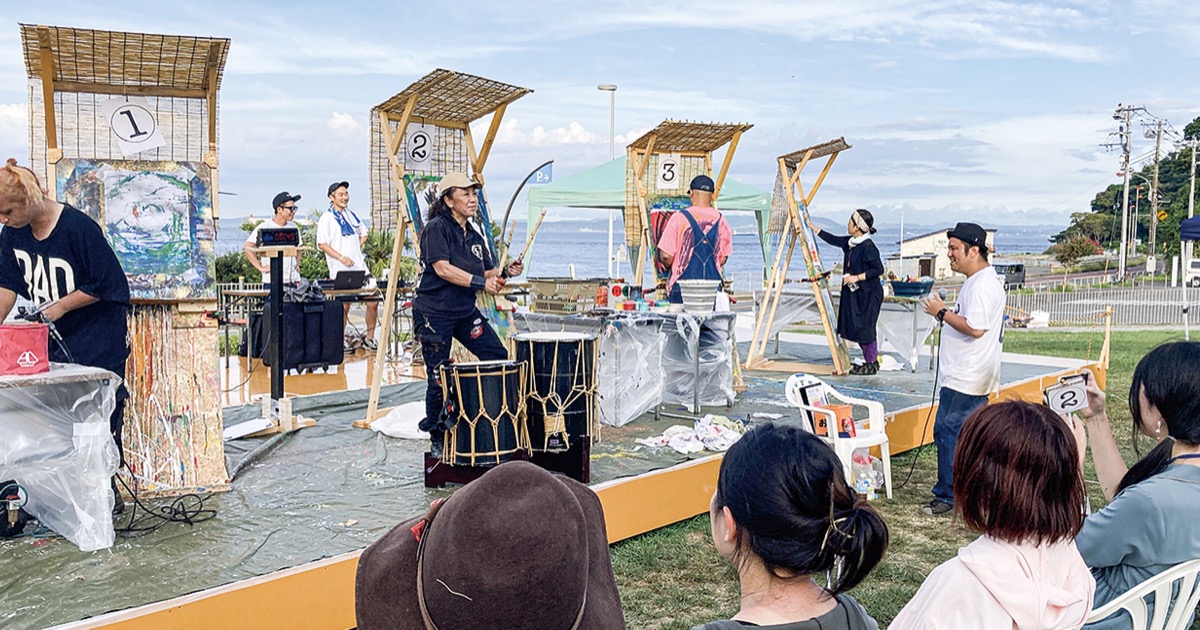 与えられたお題をテーマに即興で芸術作品を生み出し競うアートイベント「筆ロック 関東大会FINAL」が9月2日、横須賀美術館「海の広場」で開催された。(一社)筆WORKと同館の共催。