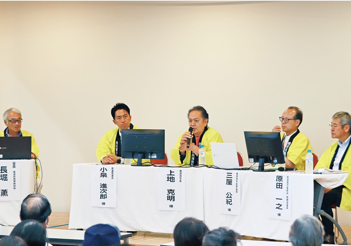 横須賀共済病院(米が浜通1の16)で、9月16日に開催された「病院まつり」の一環で、特別座談会が行われた。登壇したのは、小泉進次郎衆院議員、上地克明市長、三屋公紀横須賀市医師会会長、長堀薫同病院長、京浜急行電鉄の原田一之会長。「医療の未来を考える」をテーマに、それぞれの視点で5人が意見を交わした。
