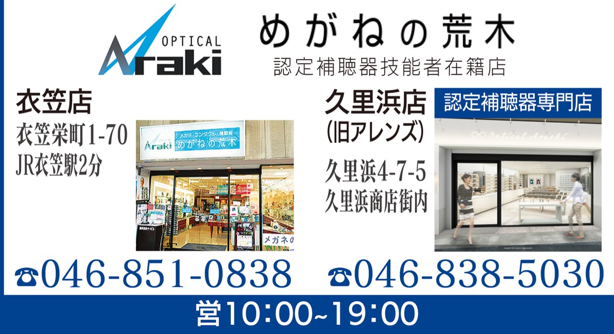 「めがねの荒木」衣笠店と久里浜店には、技術と知識を持った「認定補聴器技能者」が常勤しており、使用目的や使用環境、希望価格、聞こえの状態に合わせて的確な機器を提案が可能。久里浜店は公的な「認定補聴器専門店」に認定された。