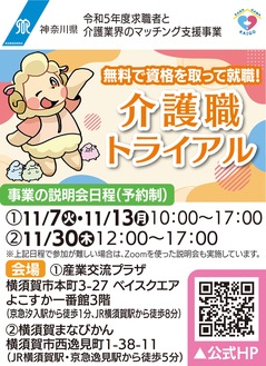 神奈川県では、介護資格の取得から就職までをサポートする「介護職トライアル」を実施中。現在、事業説明会の参加者を募集している。