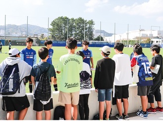 久里浜にある横浜F・マリノスの練習場「F・マリノススポーツパーク」で11月1日、神明小6年の児童8人が同チームの選手らへインタビューを行う課外授業が実施された。この取り組みは同校の「地域の専門家から学ぼう」をテーマにした授業の一環で、自身の興味関心に合わせて調べ学習を行うもの。神明小学校からのオファーをマリノスが受けたことで開かれた。
