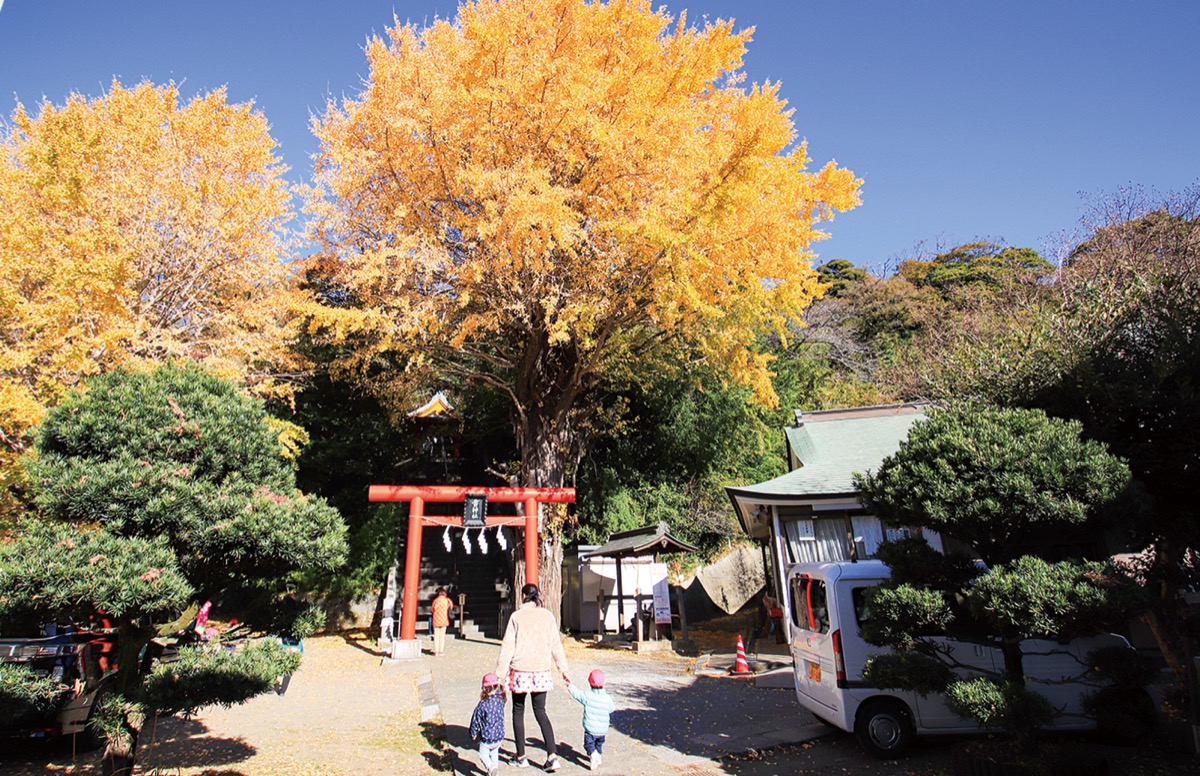 追浜のシンボルとなっている雷神社(追浜本町1の9の9)のイチョウの木が黄色に染まり、街行く人の視線を集めている。