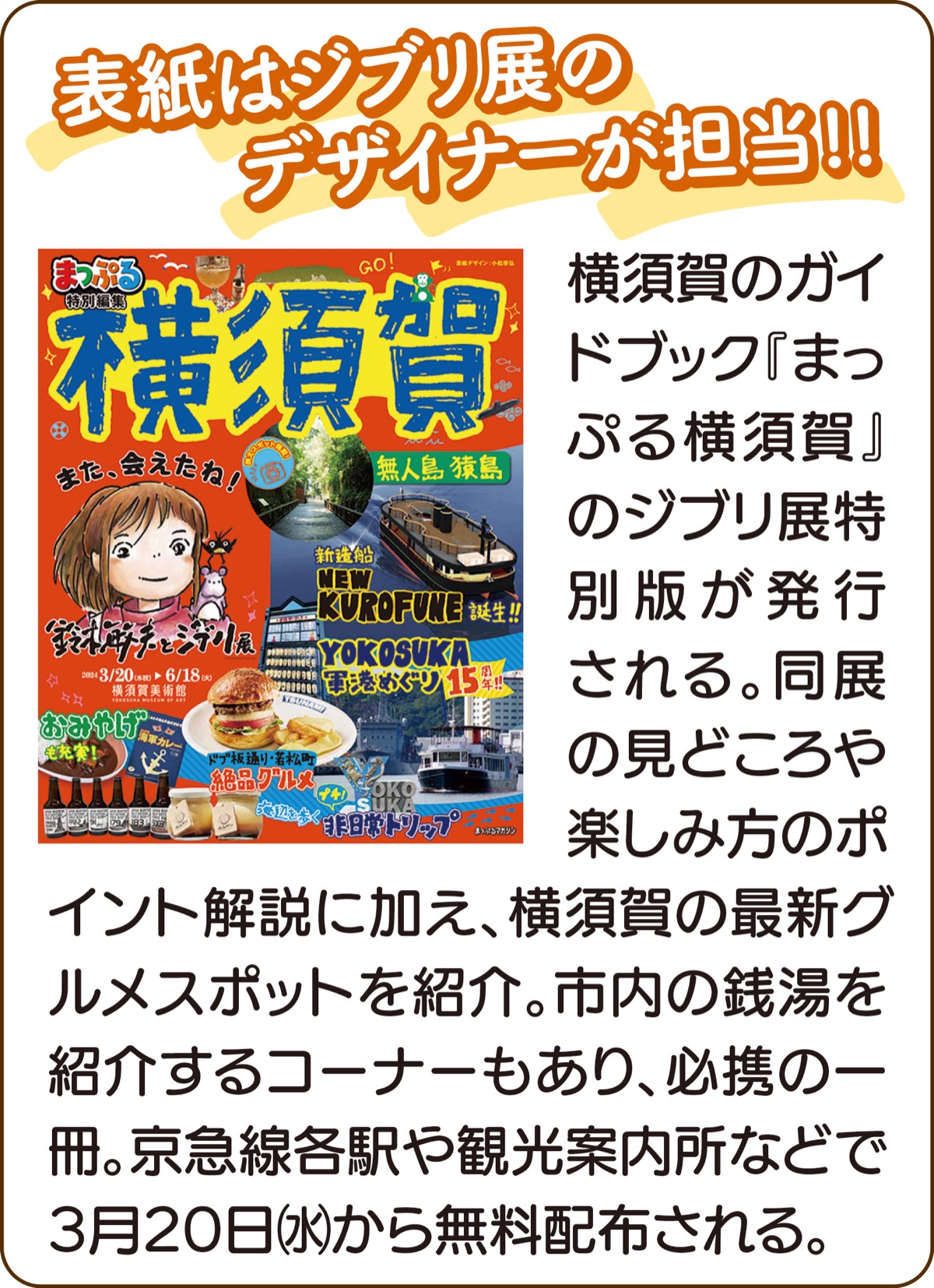 横須賀美術館で3月20日(水)から始まる「鈴木敏夫とジブリ展」に関連して、実行委員会メンバーである(株)トライアングルの三笠ターミナル(小川町27の16)で特別展示が行われる。