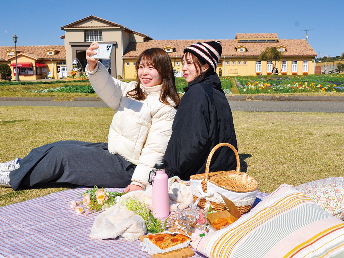 おしゃピクは、芝生や砂浜などにラグマットを広げ、料理とともに花やバスケット、ランチボックスといった見栄えのするアイテムを並べて写真を撮り、SNSにアップして楽しむもの。自分の好きな世界観や雰囲気を表現することがひとつの目的であり、撮影する場所が大きなポイントになる。