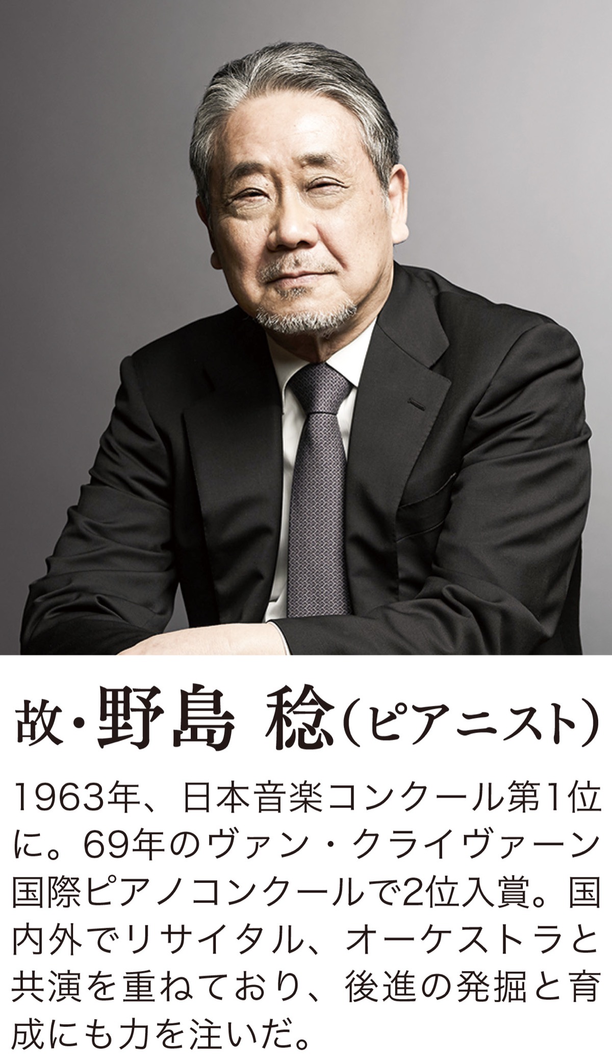 野島氏は3歳からピアノを始め、高校3年生で日本音楽コンクール第1位大賞受賞。以降も国内外のコンクールやオーケストラで高い評価を得て、目覚ましい活躍を遂げた。また、国内の若手ピアニストの発掘と育成にも尽力した教育者としても知られる。横須賀市制100周年の2006年から自身の名を冠したコンクールを市と隔年で共催して、最後の開催となった第9回までのべ640人が参加。東京音楽大学学長なども歴任し、22年に76歳で逝去した。