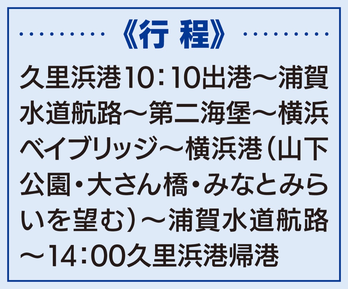 久里浜港10時10分出港、午後2時帰港のスケジュール。参加費は大人7千円、小学生4千円(船内で利用できる1千円分のミールクーポン付)、幼児は無料。定員500人。