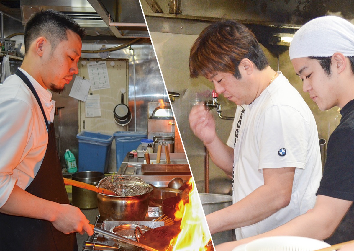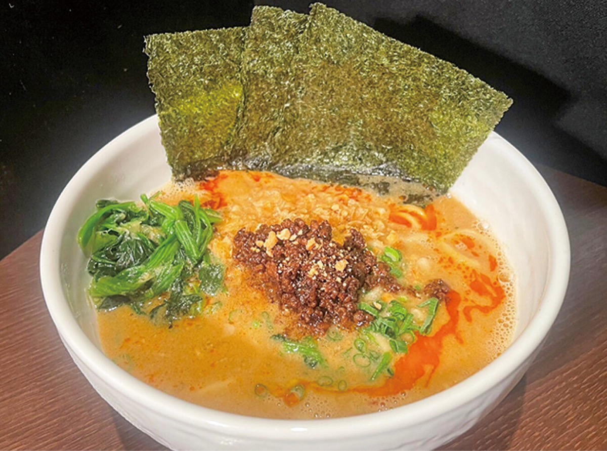 出店者の中で唯一コラボメニューで参加するのが「大津家」と「チャイニーズレストラン 凜」(若松町)。「大衆的な家系ラーメンと高級中華料理が合わさったらどうなるのか」という好奇心から、飯島さんが親交のある凜の料理長・中島貫さんに打診した。豚骨と鶏ガラの出汁が特徴の家系ラーメンと本格中華の技が融合した一杯は名付けて「家系で地元名店中華料理長と担々麺を作ってみた」=左写真。スープを大津家、胡麻の味付けや、肉味噌とラー油などのトッピングを凜が担当する。「ラーメンを入り口に中華料理の世界に興味を持つ人が増えてくれたら」と中島さん。家系スープに練り胡麻と胡麻油を合わせた濃厚なスープは「他では味わえない未知の一杯。是非会場で味わってほしい」と呼び掛ける。