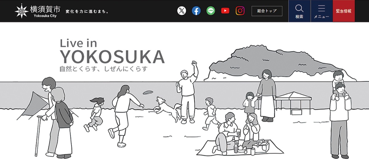横須賀市は、30代・40代の子育て世代をメインターゲットにした魅力発信サイト「Live in Yokosuka」を市のホームページ内に開設した。暮らしやすさや街の魅力などを広く発信することで課題としている移住・転入の動きを加速させる。市内の不動産事業者やマンション分譲業者とも連携し、物件情報にもアクセスできるようにすることで効果を高める。