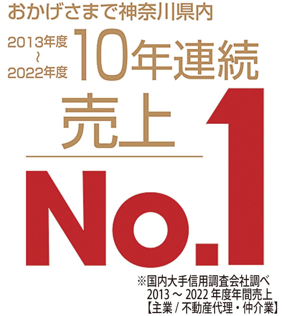 同社は県内不動産代理・仲介業者の売上ランキングで10年連続「ナンバー1」。追浜店【フリーダイヤル】0120・577・776