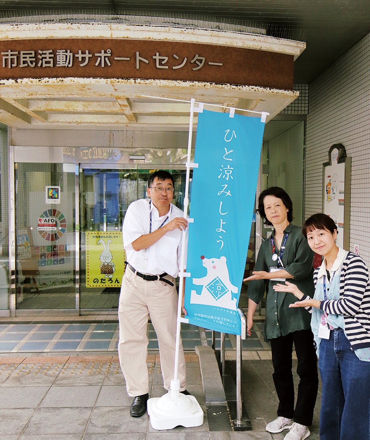 熱中症のリスクが高まっている昨今、猛暑を乗り越えられるようにと横須賀市は、独自の取り組み「ひと涼み運動」を推進している。外出時に暑さを感じたら、用が無くても指定の施設で「ひと涼み」できる。目印は「白くま」が描かれたのぼり旗やポスターを掲示している施設で、市役所や行政センター、市民活動サポートセンター、民間施設の郵便局など全173施設が対象。