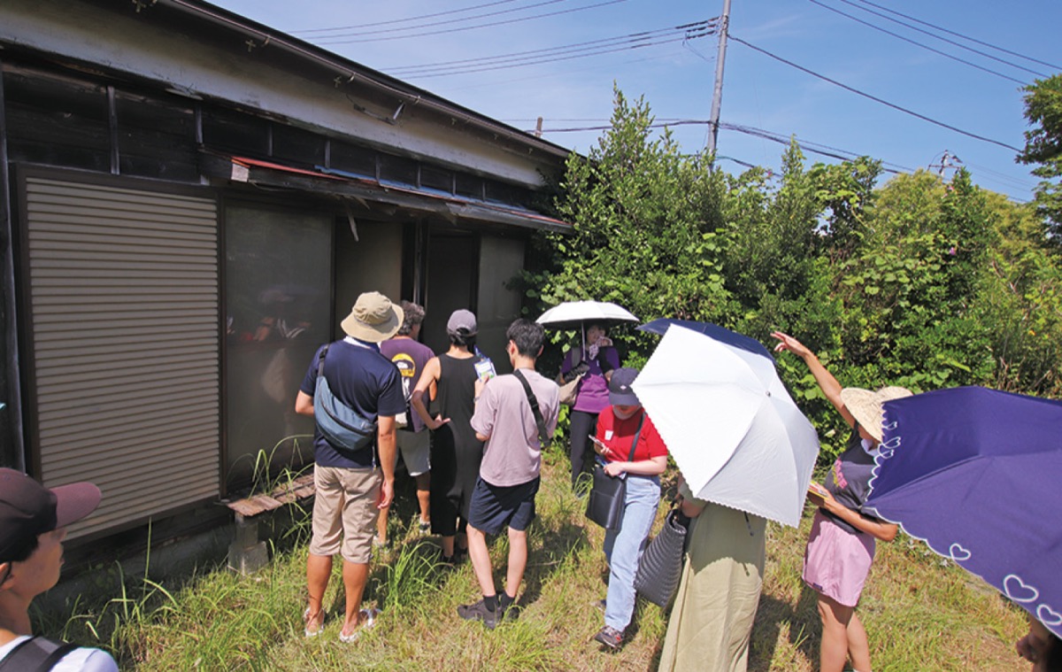横須賀市田浦町1丁目にある「旧市営田浦月見台住宅」の再生に向けた取り組みが動き出した。横須賀市と連携して同地の活用を行う(株)エンジョイワークス(鎌倉市)は、空き家となっている既存建物を「店舗兼住居」もしくは「住居専用」として賃貸入居者を募っており、7月21日に実施した現地見学会には市内外から関心を寄せる約100人が集まった。