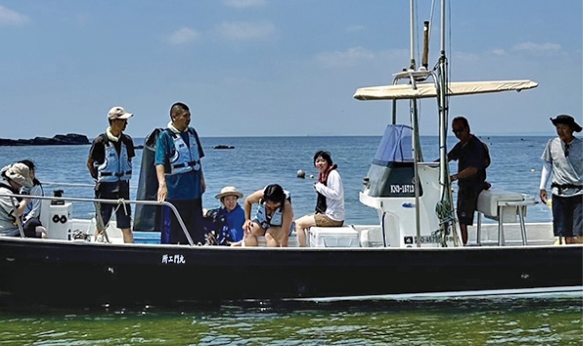 この日は社協職員やボランティアがサポート。海で泳いだり、カニを捕まえたり、波打ち際では参加者らの笑顔が光った。NPO法人小網代パール海育隊の協力によるボートの遊覧や食事には特産の三浦産のスイカも用意され、40歳の息子と参加した60代女性は「海水浴など普段はできないことが親子で出来るので毎年楽しみにしている。食事も皆で食べると美味しい」と満足気。市社協の齋田聖子さんは「色々な人の協力があって実現できているイベント。参加者皆さんに楽しんでもらえたようで良かった」と話した。