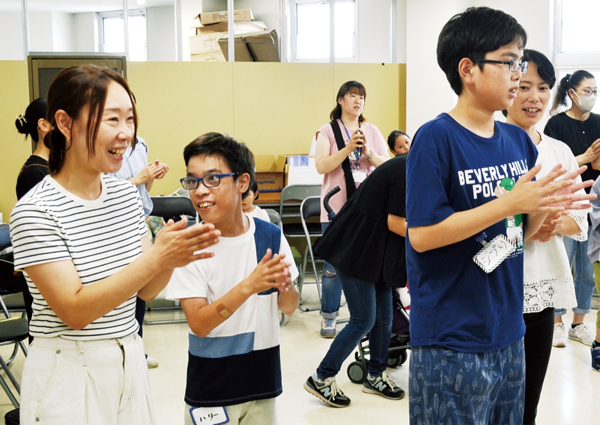 7月20日、同区大型商業施設内にある会議室。出演者が親子で参加する中、体幹機能障害のある金子遥希さん(追浜中2年)が音楽に合わせて手拍子を打ちながら笑みを浮かべた。