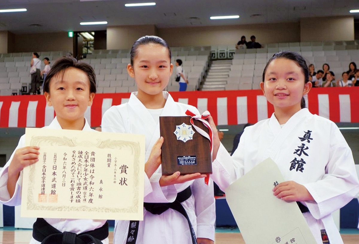 横須賀市を拠点に活動する空手道場「真永館」に所属する小学生3選手が8月3日に日本武道館で行われた「全日本少年少女武道錬成大会(空手道の部)」で敢闘賞を獲得した。同館としての入賞は初といい、大会では選手らの奮闘ぶりが光った。