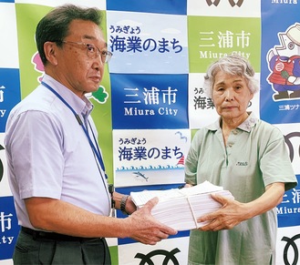 三浦市役所の引橋地区への移転を巡り、有志から成る市民団体が20日、市役所の出張所を三崎地区に設置することを求める陳情書を吉田英男市長宛に提出した。要望に同意する4781筆の署名を添えた。市は移転後、移動型の出張所導入を検討するなど行政機能が不全にならないよう努めるとしているが、「南下浦と初声地区には出張所がある。三崎に設置しないのは不公平」と常設型の設置を求めている。