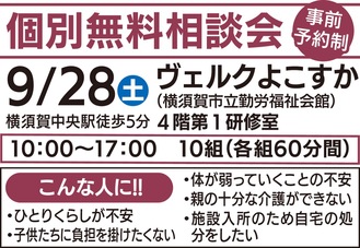 同センターが9月28日(土)に実施する相談会では、専門家がサービスや費用について分かりやすく解説する。また、実際に介護状態にある親を抱えている家族の実例なども交えながら、施設の紹介を行う。