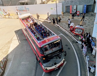 同電鉄は2017年にオープントップバスの運行を開始。昨年は約5200人が利用した。チケットはブルー、グリーンコースがそれぞれ1500円、ホワイトコースが2千円。同駅前の観光案内所で販売する。