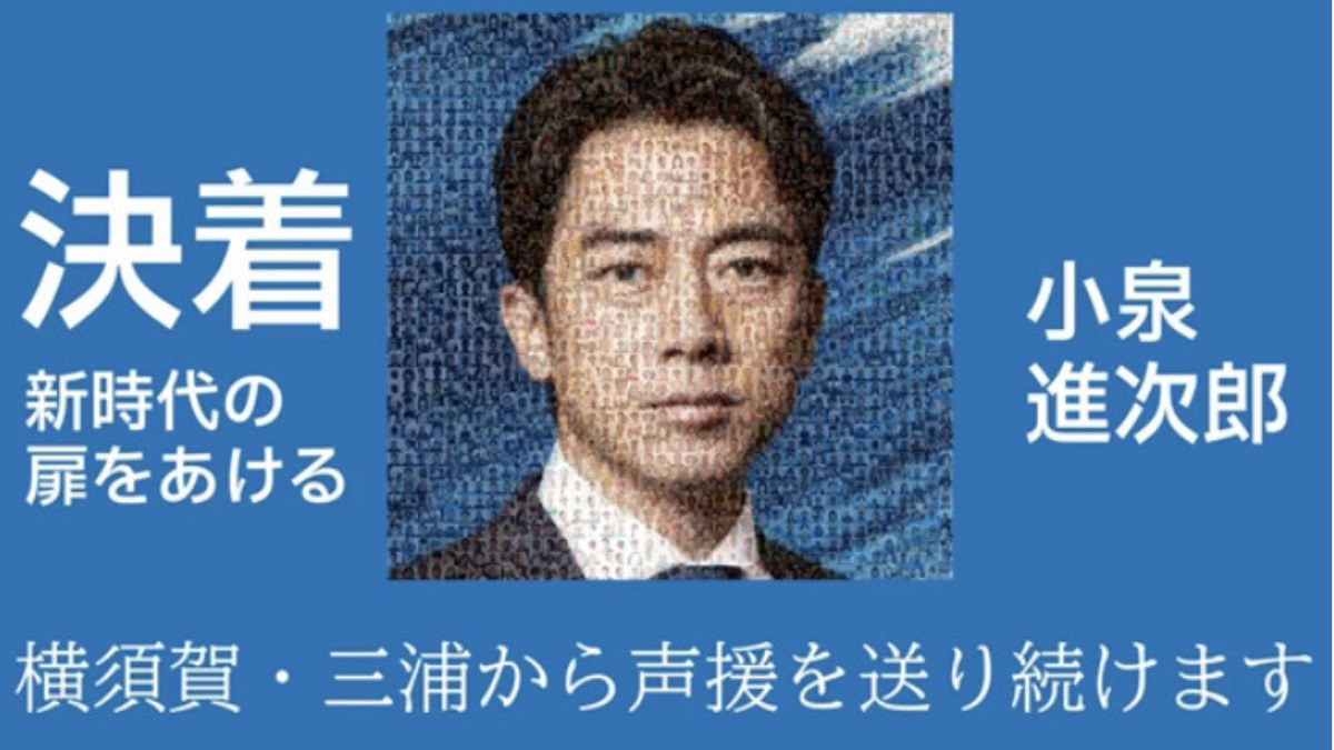 自民党の小泉進次郎衆議院議員の党総裁選立候補を巡り、地元有志から成る「小泉進次郎応援団」は応援企画として同氏の顔を模したフォトモザイクアートを制作した。9月12日から市内8カ所にあるデジタルサイネージ「よこすかビジョン」で放映を行っている。総裁選投開票前日の26日(火)まで。